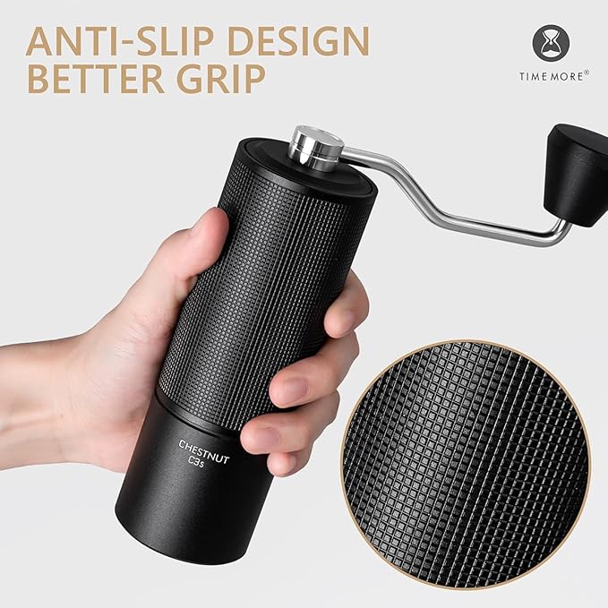 - DURABLE & BUILT TO LAST - Our C3S manual coffee grinder is upgraded to an all-metal aluminum alloy body, with no plastic part inside, built for precise grinding and longer lasting. Fixed with a dual-bearing design, making the grinding process more detailed and the coffee powder more uniform.