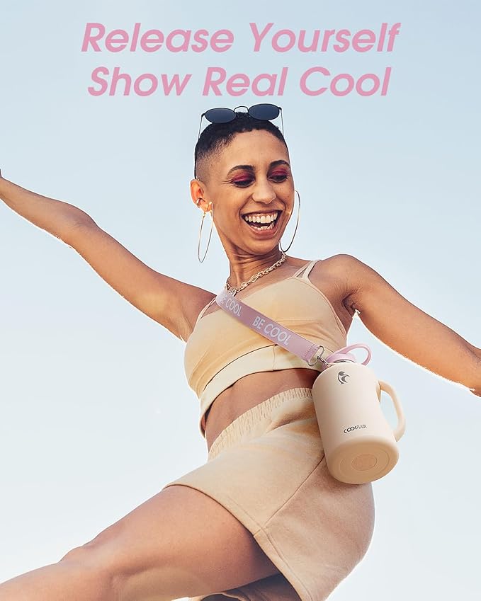- Unleash Your Style, Hands-Free: Elevate your fashion game with this half gallon water bottle's exquisite adjustable shoulder straps and eye-catching design. Whether worn crossbody, single-shoulder, or hand-held, it's a statement piece that complements your vibrant personality.