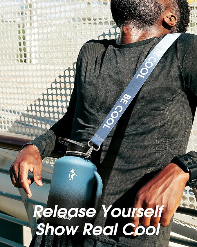- Unleash Your Style, Hands-Free: Elevate your fashion game with this half gallon water bottle's exquisite adjustable shoulder straps and eye-catching design. Whether worn crossbody, single-shoulder, or hand-held, it's a statement piece that complements your vibrant personality.