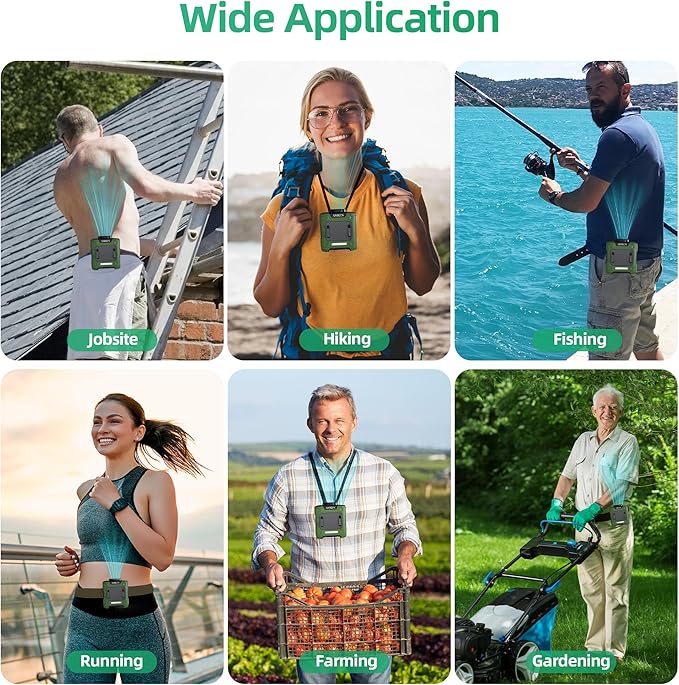 - Waist Clip Fan with Wide Application: The shell of the waist fan is made from heavy-duty plastic and silicone materials, providing a secure grip and preventing accidental falls. This design makes the waist fan suitable for long-term outdoor use. This portable waist fan has a wide range of applications that you might not even imagine. It keeps you cool from the inside out during various activities such as construction work, gardening, farming, fishing, camping, cycling, traveling, or climbing.