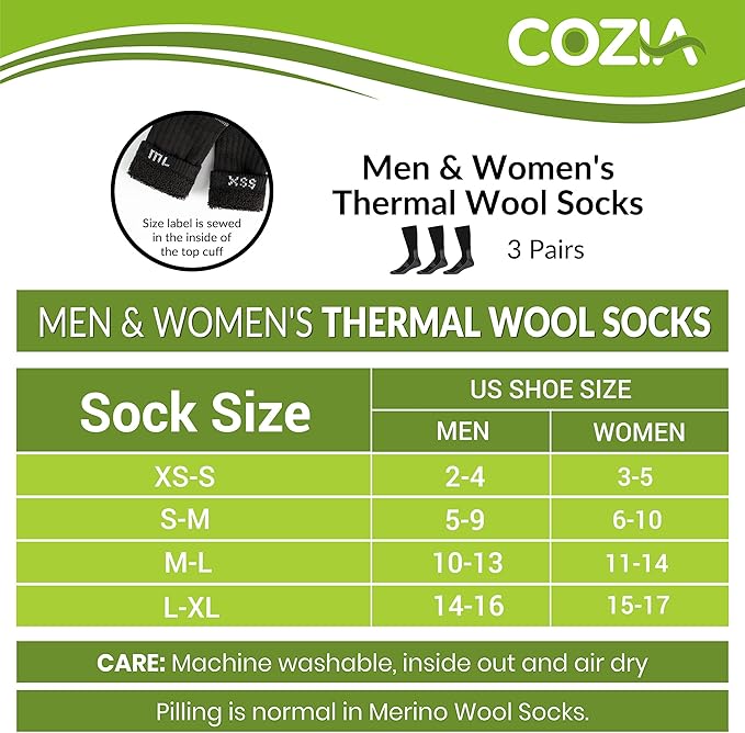 COZIA Merino Wool Socks for Men and Women Warm thermal Boot Hiking Socks 3 Pairs
