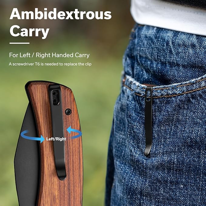 - [Ambidextrous Carry] Camping knife with reversible pocket clip allows for fully ambidextrous carry, providing versatility and functionality wherever you go.