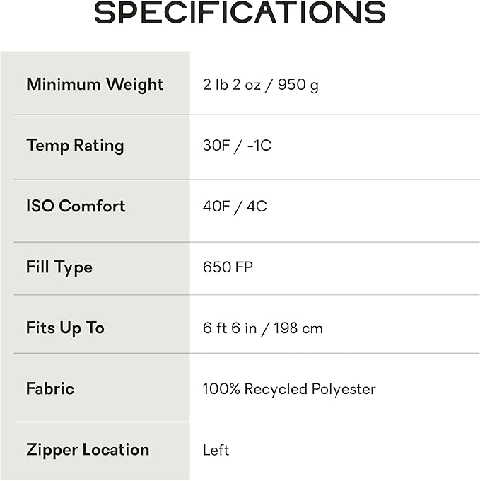 - Fill Material : Down