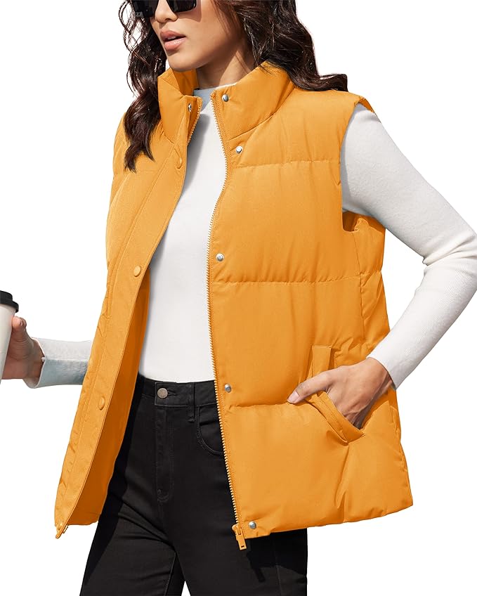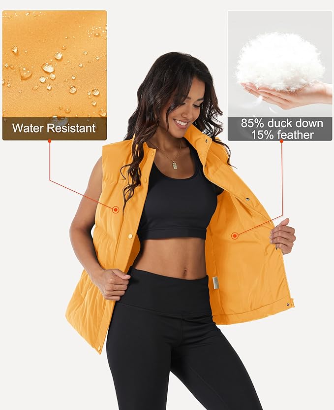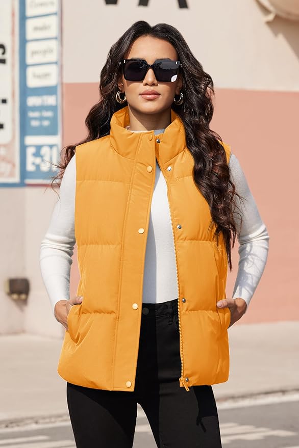 • Features: Ladies oversized down vest button plus zipper closure, sleeveless puffy vest, casual classic fit design.