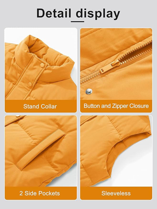 • Occasion: Women's puffer vest can be worn in cold weather. It can be worn with underwear, jeans, sweatpants, pants, cycling shorts for a stylish look.