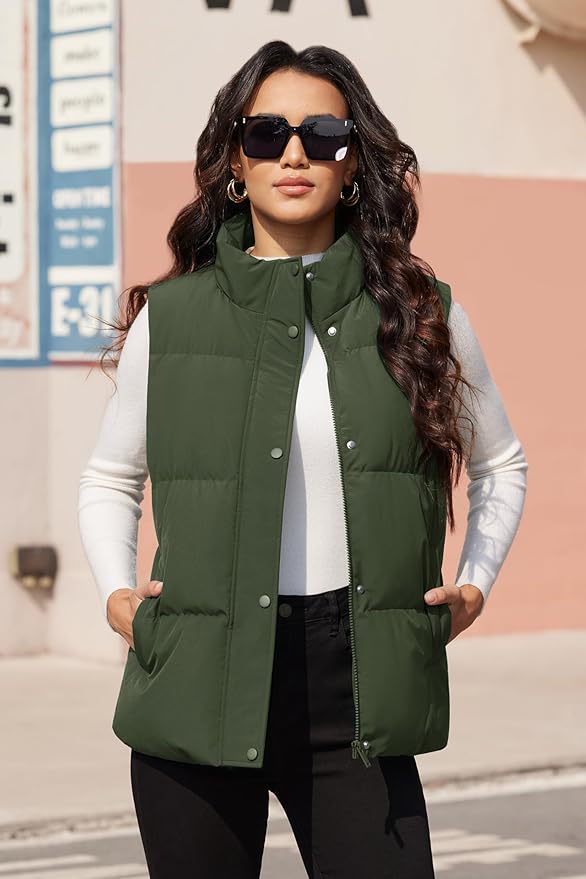• Features: Ladies oversized down vest button plus zipper closure, sleeveless puffy vest, casual classic fit design.