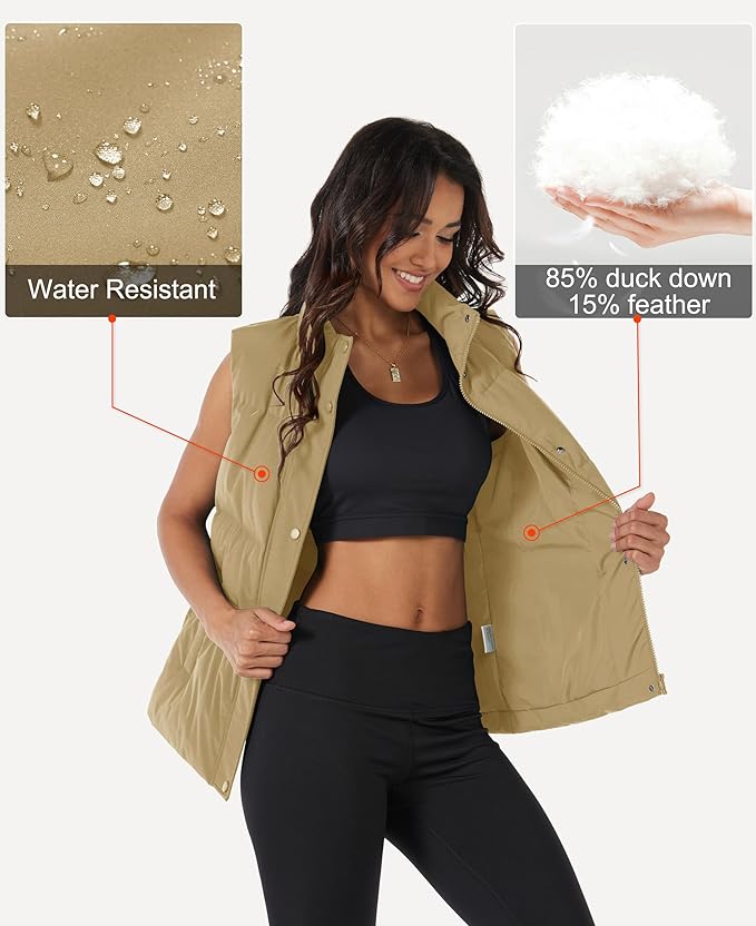 • Features: Ladies oversized down vest button plus zipper closure, sleeveless puffy vest, casual classic fit design.