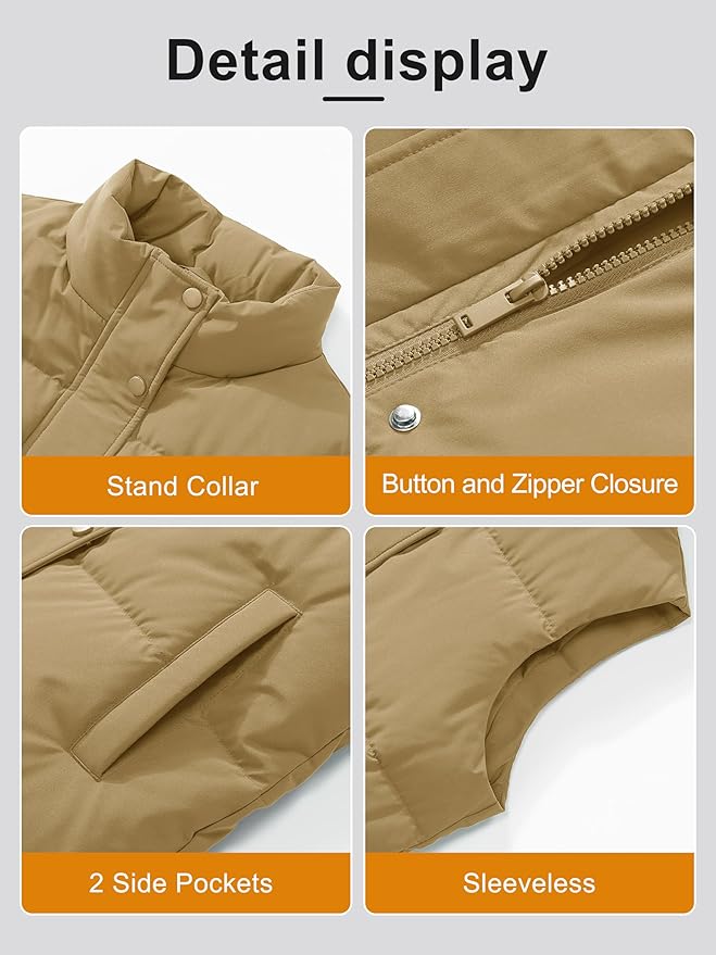 • Occasion: Women's puffer vest can be worn in cold weather. It can be worn with underwear, jeans, sweatpants, pants, cycling shorts for a stylish look.