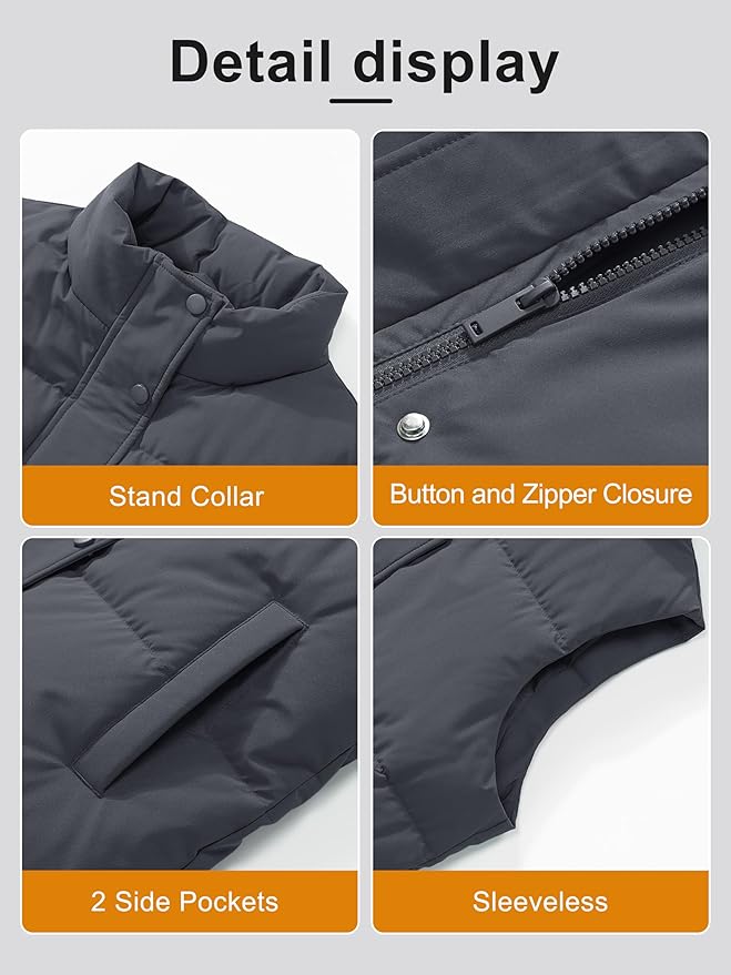 - Warmth: Sleeveless puffer vest fabric is soft and lightweight, the down vest can withstand the cold wind and snow.