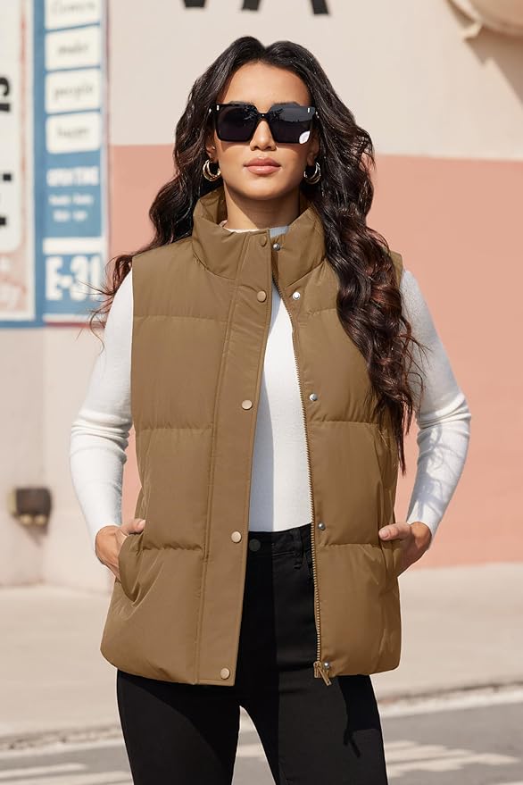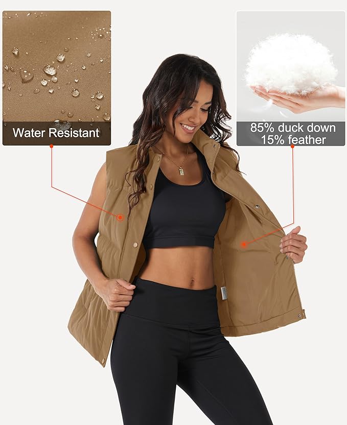 - Features: Ladies oversized down vest button plus zipper closure, sleeveless puffy vest, casual classic fit design.