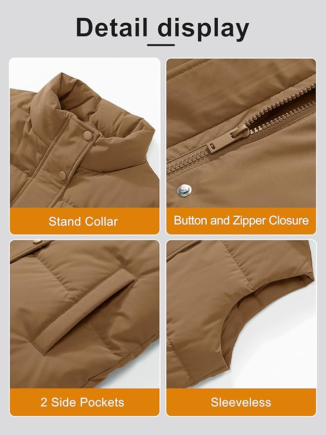 - Warmth: Sleeveless puffer vest fabric is soft and lightweight, the down vest can withstand the cold wind and snow.