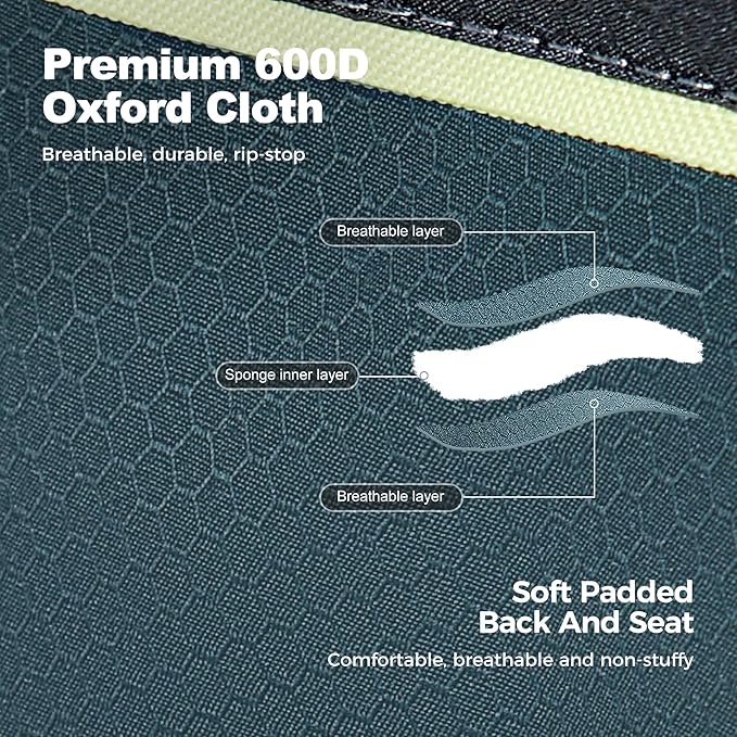 - HIGH QUALITY CAMPING CHAIR : Ergonomic padded back ,600D padded oxford fabric , durable powder-coated steel tube frame and armrests , high-quality materials only provide you with a comfortable and safe chair . Weight Capacity: 450 LBS , stable and strong