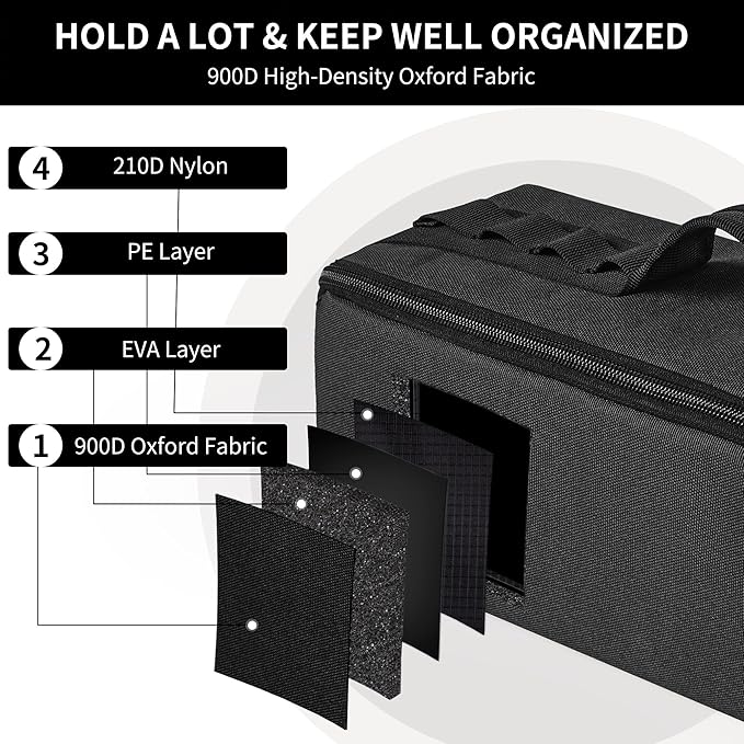 - [Quality Material & Workmanship] The tool bag is made primarily of heavy duty 900D Oxford cloth for unmatched durability and reliability. The entire tool body is finely stitched and fitted with a heavy lining, making the bag very tough and durable.