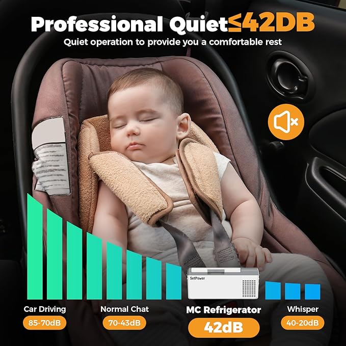 - Anti Tilt And 42dB Low Noise: This Portable Freezer can still perform well even under a 40° tilt angle without worrying about bumpy roads or inclines, available for SUV, Truck, RV, Camper, Jeep, Van, Boat, etc. This 12 volt refrigerator is also designed to run with low noise, which is only 42dB, therefore, you can have a good sleep after a long drive