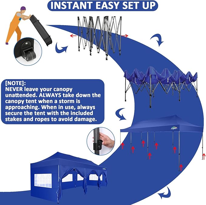 COBIZI 10x30 Pop Up Canopy with 8 Sidewall,Heavy Duty Canopy UPF 50+ All Season Wind Waterproof Commercial Outdoor Wedding Party Tents for Parties Canopy Gazebo with Roller Bag(10 x 30 ft Dark Blue)