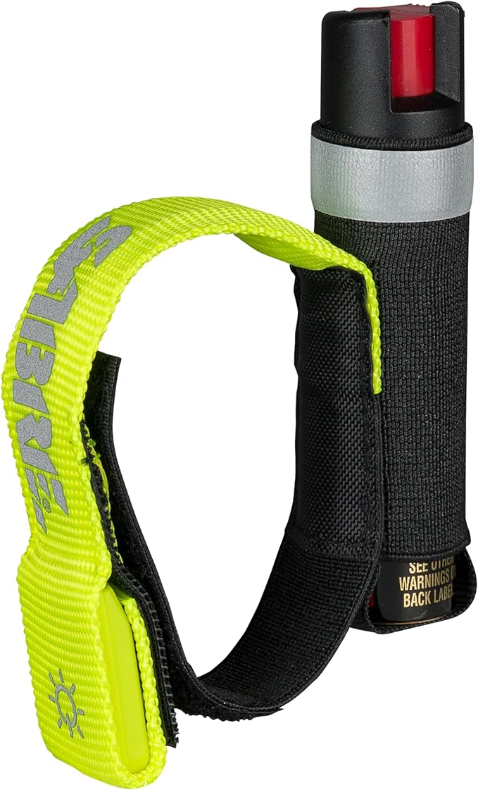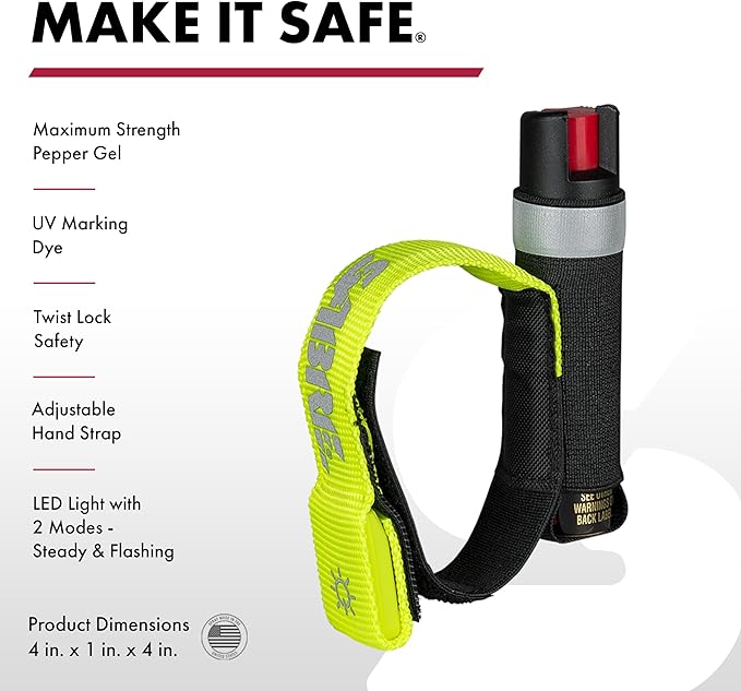 - LED STRAP: Two mode LED Provides an innovative, all in one safety device with Light Up LED Strap for visibility & Maximum Strength Pepper Gel for defense