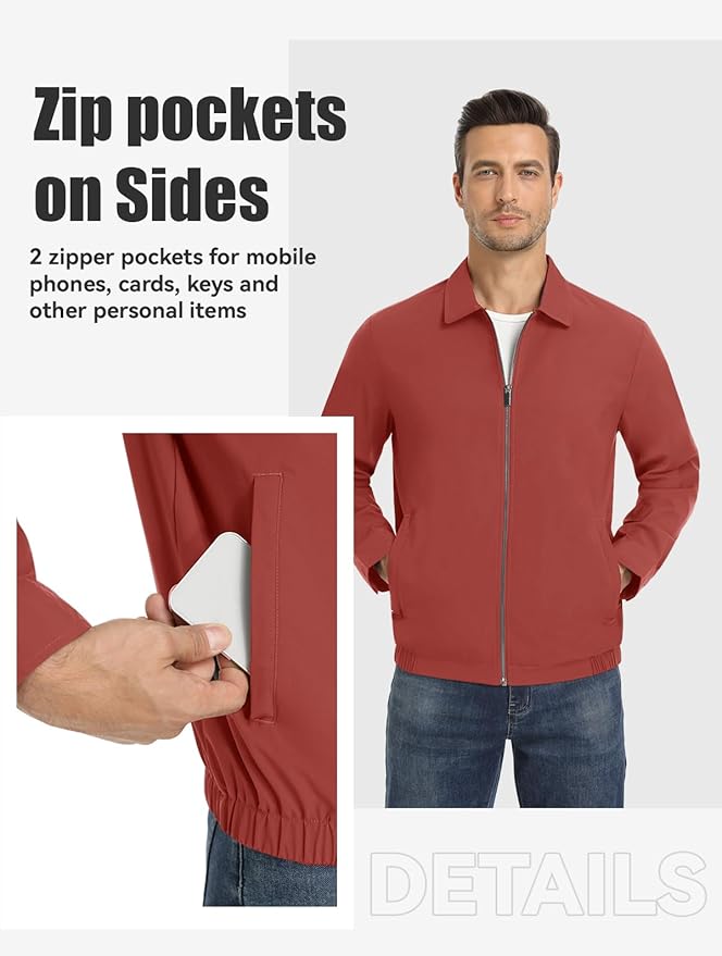 MAGNIVIT Men's Lightweight Jackets Light Windbreaker Full Zip Up Stylish Golf Coat Business Work Casual Dress