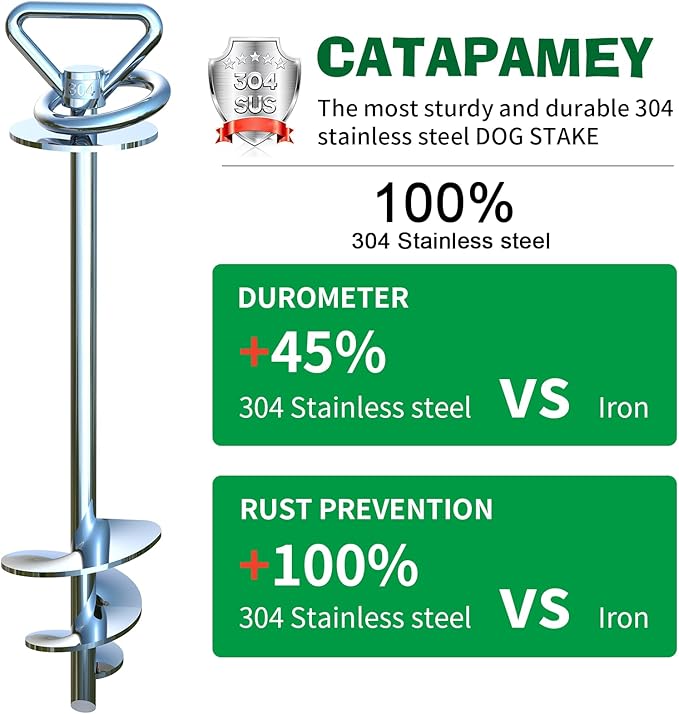 - MADE OF 304 STAINLESS STEEL:dog tie out stake- The heavy duty sprial ground stake is made of high quality stainless steel,dog chains for outside with high-quality electroplating technology,which makes him the most rust-proof bolt on the market.dog runner Longer service life,saving you money