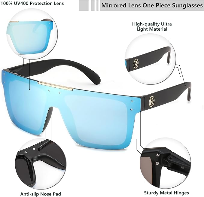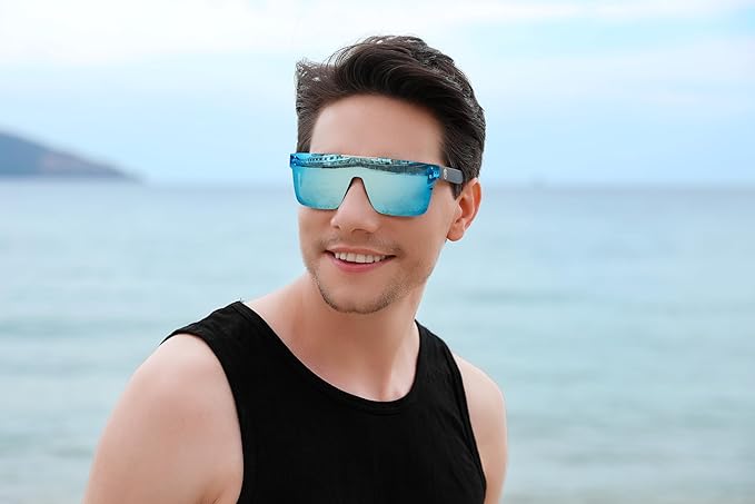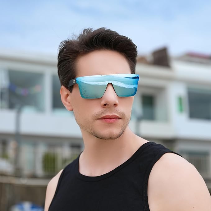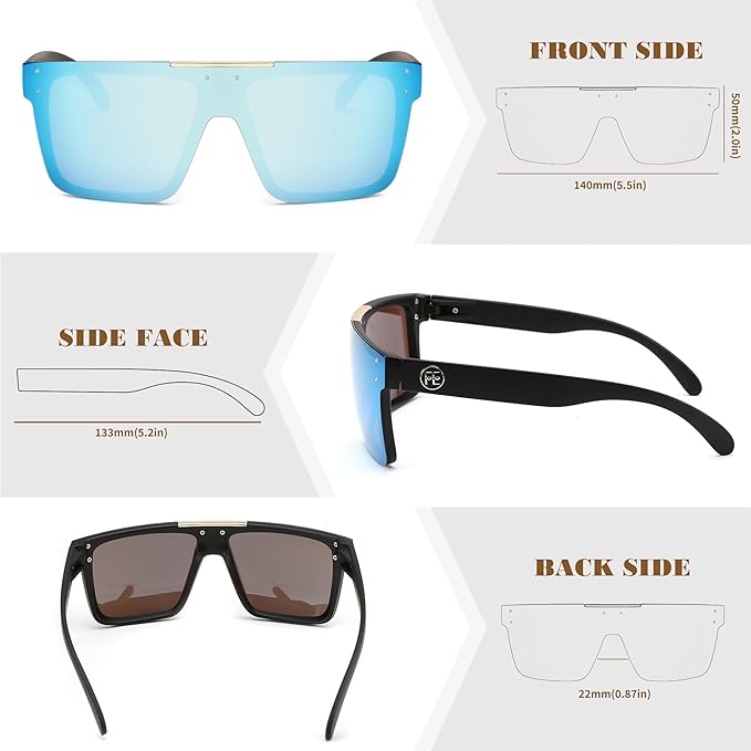 - 【Flat Top Shield Sunglasses】These Retro Sunglasses with an oversized square frame design, oversized sunglasses for men, can well modify the face shape, the overall appearance of the sunglasses is very fashionable, trendy, cool, unique, and cute, and also suitable for high fashion accessories and daily wear all year round