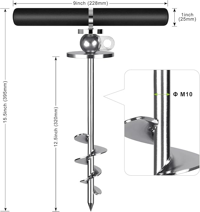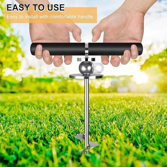- 【EASY TO INSTALL AND USE】Spiral designed dog anchor is easily screwed into and out of the ground using the included torque bar, as tight as possible. Then simply attach any leash or cable of your choice