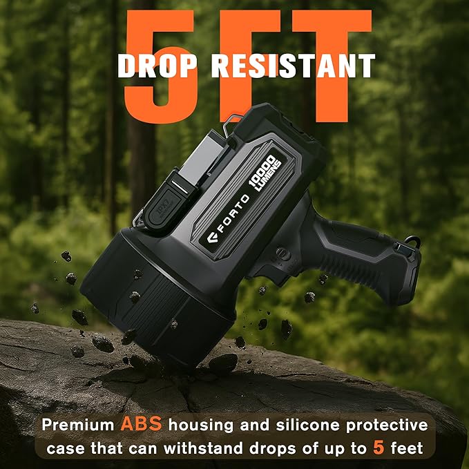 - 【IPX7 Waterproof and 5ft Drop Resistant】FORTO marine spotlight is IPX7 waterproof, with a high-strength ABS housing and a silicone protective case that can withstand drops of up to 5 feet. Fully submersible in water without damage and resistant to dust and impact, it is ideal for rugged outdoor adventures.
