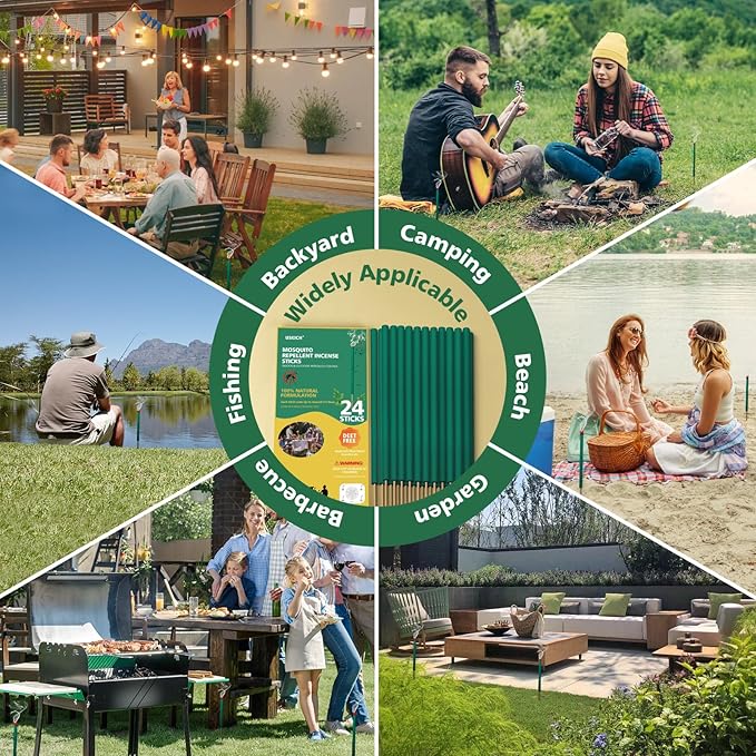 - Ideal Mosquito Protection While Outdoors - Whether you're hosting a BBQ; Whether at home or outdoors yard,mosquito repellent incense is the perfect solution, making it possible to enjoy your time outdoors.our repellent incense sticks are useful to deter mosquitoes especially around your favorite outdoor spaces - swimming pool, backyard, porch, patio, camping, picnic, fishing or just working at the garage during mosquito season.