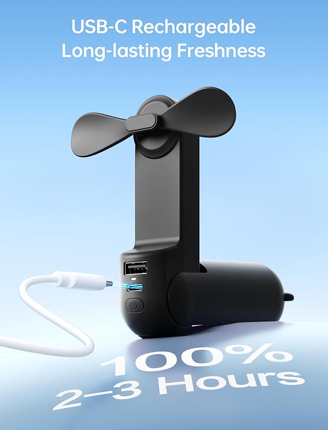 - 12-19 Hours Cooling Time: With up to 19 hours of cooling time on a single charge, this mini handheld fan ensures you stay refreshed during travel, concerts, and outdoor adventures; Conveniently rechargeable via USB