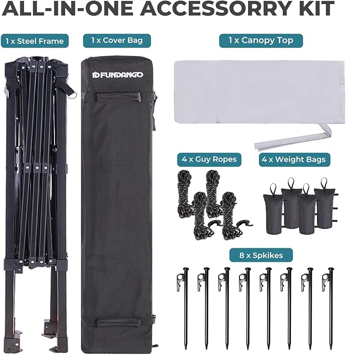 - ALL-ROUND PROTECTION AGAINST RAIN & SUN: The 10x10 canopy is made of high-quality oxford fabric coated with a PU1000mm waterproof coating, boasting excellent waterproof performance. It can shield you from all kinds of rainy weather. The reverse side of the fabric is fully coated with silver, providing UPF50+ sun protection. It offers first-class UV blocking effect, ensuring more thorough sunshading