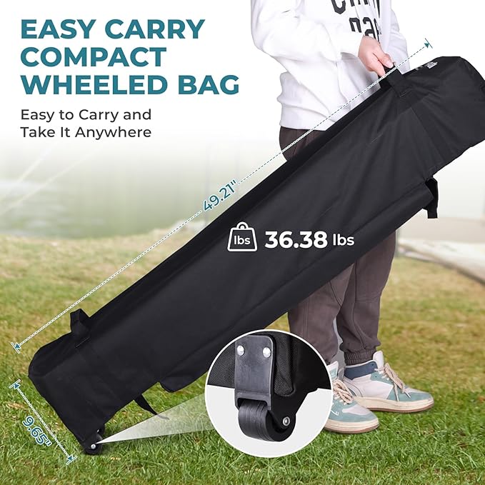 - ULTIMATE PORTABILITY: Our beach canopy comes with a wheeled storage bag (weighing only 36.38 pounds). Whether you're going camping in the countryside, having a beach vacation, or having a picnic in an urban park, you can easily drag it and reach your destination effortlessly. Say goodbye to the trouble of carrying heavy loads and enjoy a convenient trip