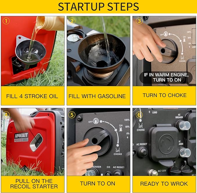- 【AFOERIT Generator】Peak power of 3500 watts and typical running power of 3000 watts, ensuring reliable performance for various applications.