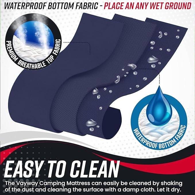 - EASY TO CLEAN- The Vayway Camping Mattress can easily be cleaned by shaking of the dust and cleaning the surface with a damp cloth. Let it dry. The Camping mattress bottom is waterproof. It could be put on the grass.