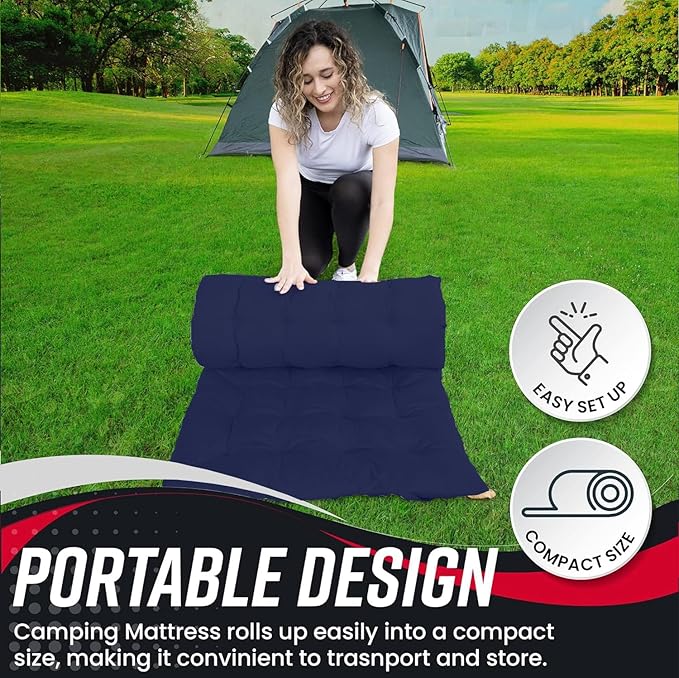 - PREMIUM QUALITY- The Vaygway camping mattress is made from Premium Quality cotton with a thickness up to 3 inches that ensures Durability and Longevity. It’s big enough for an adult or 2 kids.