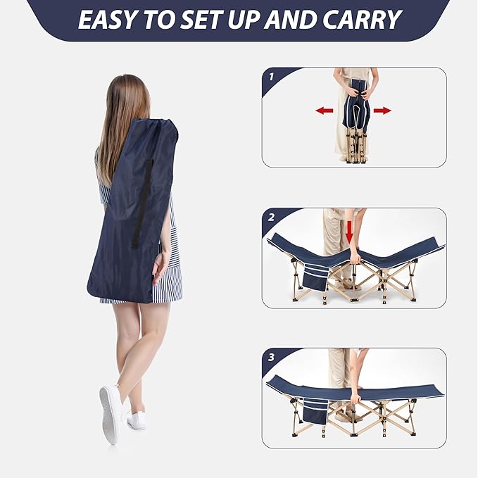 Folding Camping Cot for Sleeping, Portable Cots for Adults, Heavy Duty Cot Bed 550LBS(Max Load), Extra Wider Cots with Large Pocket for Outdoor, Office, Beach