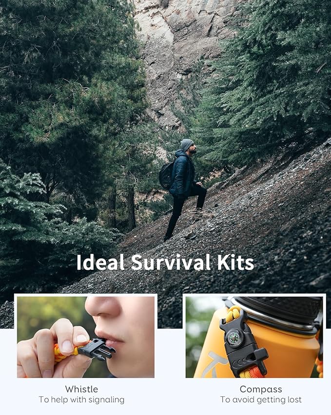 - 【Full-Function Accessories】: You can sip through the flip-up straw lid and drink like a fish through the spout lid. Each lid comes with a rubber seal ring to ensure 100% non-leakage. The functional paracord handle is portable on the go. Compact compass and whistle are ideal survival kits for expeditions in the wild. The carabiner helps clip the bottle anywhere.