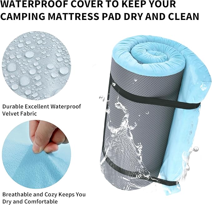 - 【Waterproof Removable Velvet Cover】The ultra-soft vevet cover with waterproof TPU-coated fabric protects the foam from rain, dew and wet floors or weather. The outdoor mattress mat has a soft and smooth surface. Matching zip closure that is removable and washable for easy use.