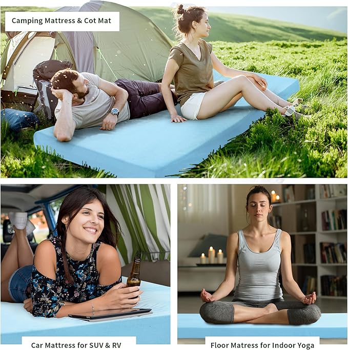 - 【2-Layer Memory Foam】The camping mattress features a 2-layer design that includes 1" of high-density memory foam and 2" of soft support foam. This combination creates a medium firmness that balances comfort and support and retains its shape even after extended use.