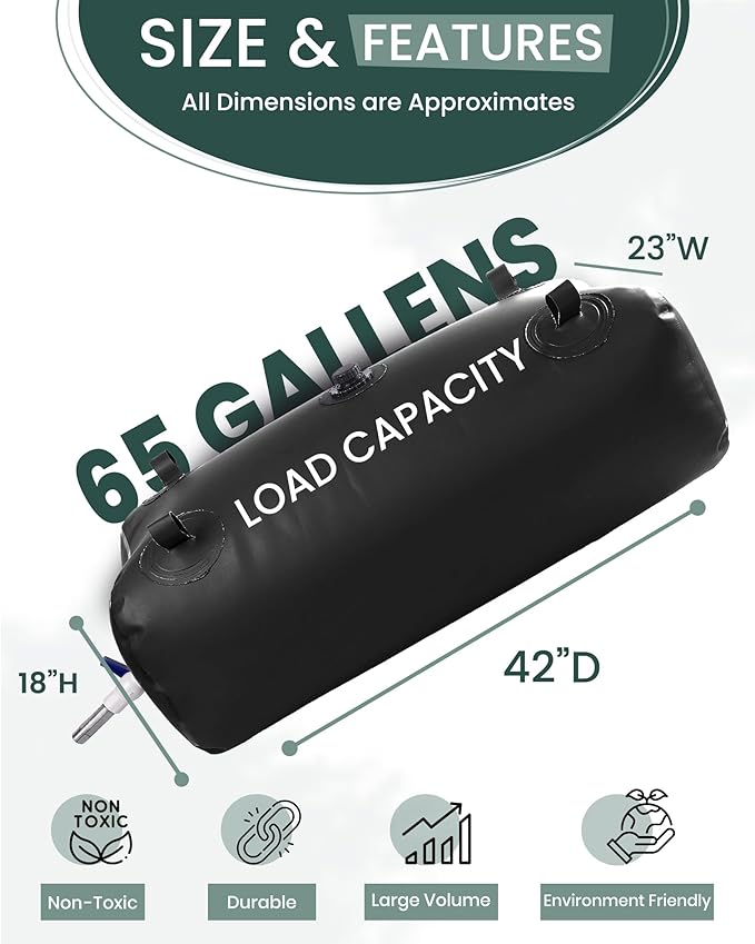 - LARGE CAPACITY: There are five different sizes to choose from, with a maximum water storage capacity of 264 gallons. The different sizes of water storage bags will allow you to be outdoors and not have to worry about running out of water.