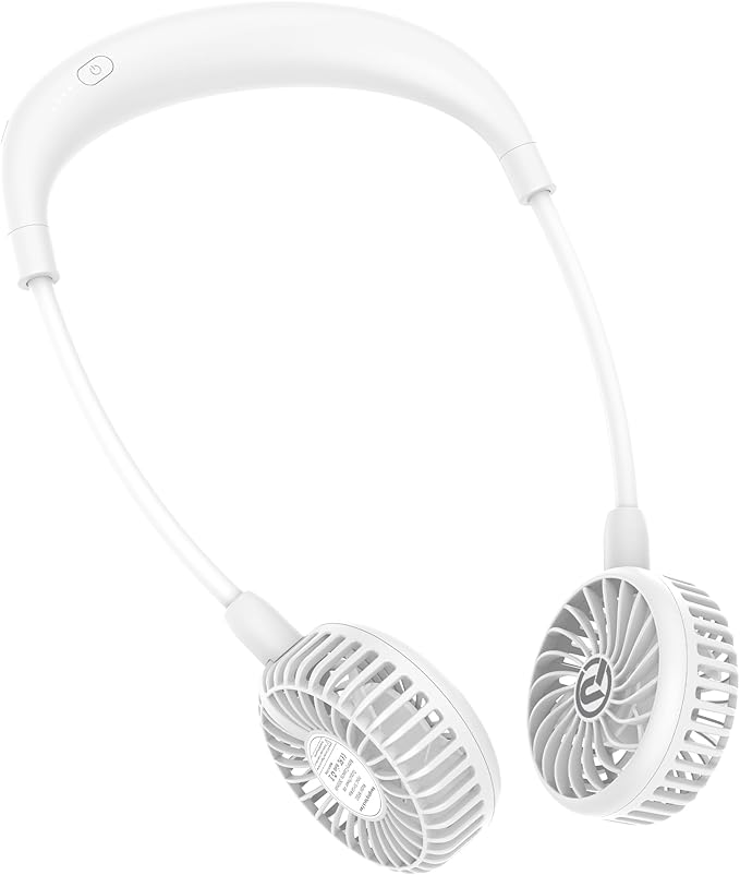 - 2 Fans with Adjustable Angles: this personal fan has 2 separate fans heads, generating more powerful airflow than those blade-less fan, meanwhile you can direct the wind at will to cool your neck and face due to the flexible band