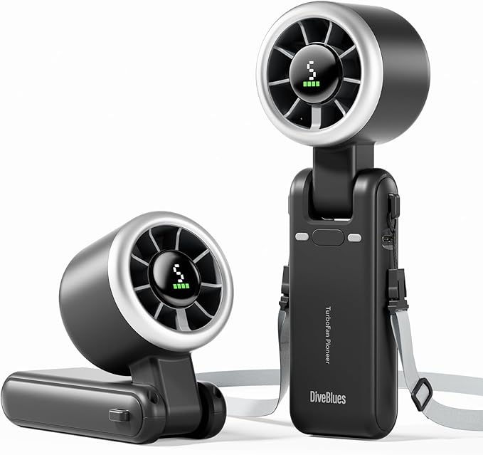 Diveblues Portable Handheld Turbo Fan, 5 Gear Wind, Battery Operated, Up to 12 Working Hours, 3 IN 1 Hand Fan with Air Turbo Tech Cooling Fan for Outdoor Activities, Travel, Working