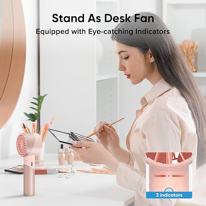 - Handheld/Desktop Fan: Our designers have done a good job of balancing the weight of the mini fan and the vibration of the blades, the rechargeable fan can stand independently as a desk fan without an additional base, freeing your hands when you are busy at work / in office and this travel fan runs quietly (30 db), not bother you at all