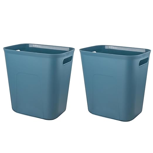 UUJOLY Plastic Small Trash Can Wastebasket, Garbage Container Basket for Bathrooms, Laundry Room, Kitchens, Offices, Kids Rooms, Dorms, 3.5 Gallon, Bluish Green, 2 Pack