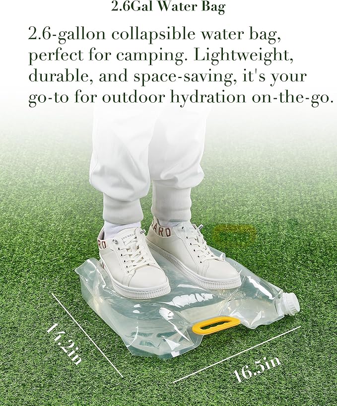 - Large Capacity: Includes a 5 Gallon Water Jug and 2.6 Gallon Collapsible Water Bag, providing ample water storage for various purposes.