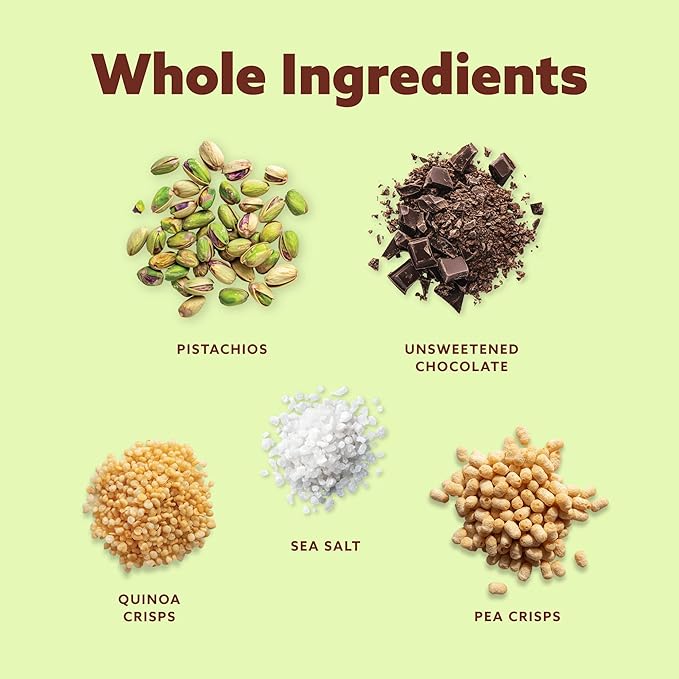 - PISTACHIO CHOCOLATE FLAVOR: It's the perfect mix of roasted pistachios and rich chocolate flavor with creamy almond butter and a touch of sea salt. This bar delivers a crave-worthy flavor that’s as vibrant as it is satisfying. Think Dubai Chocolate Bar, but with 10g of protein.