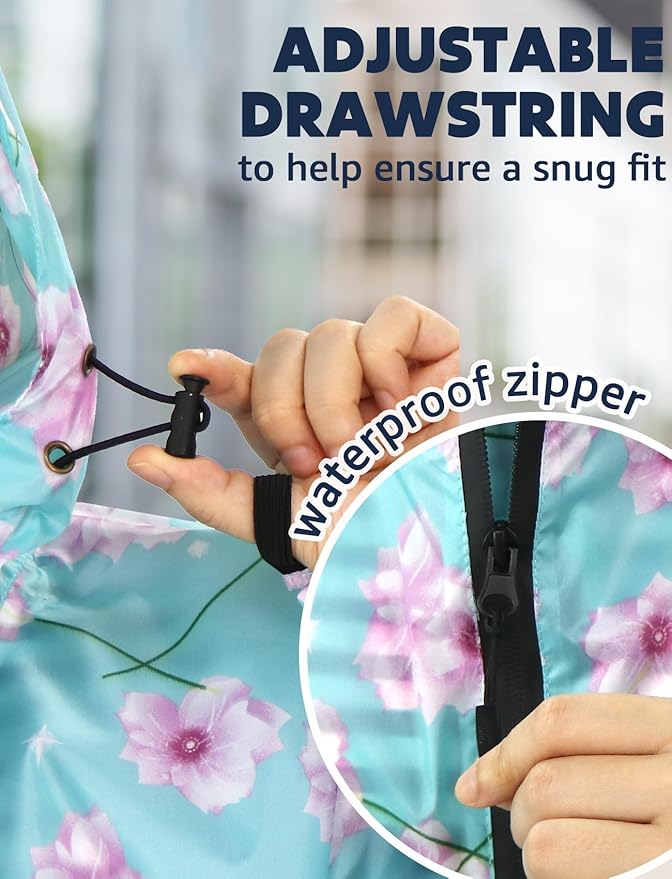 - Extremely Water Resistant: Anyoo stylish rain poncho is made of superior quality polyester cloth + PVC coating.To enhance the waterproofing capabilities of a rain poncho, we use seam sealing tape to ensure that water cannot seep through the seams. Adjustable hood with strawstring,which helps to keep the wearer's head and face dry, and drawstrings to keep the poncho in place during windy conditions