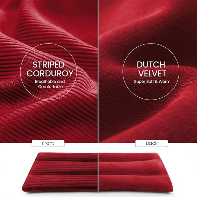 - 【Double Side Fabric Design Microwave Heating Pad】The heat can be evenly distributed on the bean bag and maintain long-lasting heat. Thanks to the interval cell design, it can be well fixed in the position of the filling. Super soft dutch velvet on one side to gently hug your skin and provide moist warmth, while the striped corduroy on other side give you a different comfortable touch.