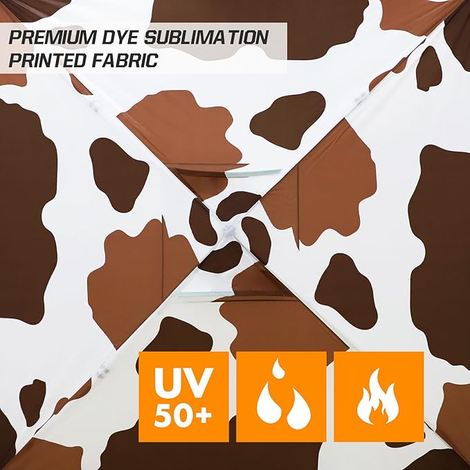 EAGLE PEAK Pop Up Canopy Tent with Wheeled Carry Bag, 8 Stakes, 4 Ropes, 4 Weight Bags, Easy Set Up Tent Canopy, 10x10 ft, 100sqft of Shade, Brown Cow Print