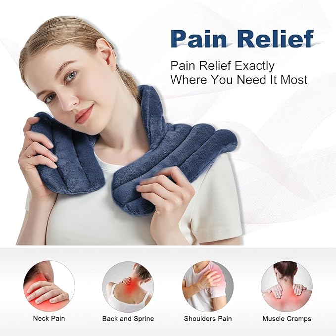 Neck Heating Pad Microwavable for Shoulders, Warmer Wrap Microwave Heating Pad for Neck and Shoulders for Pain Relief (Navy Blue)