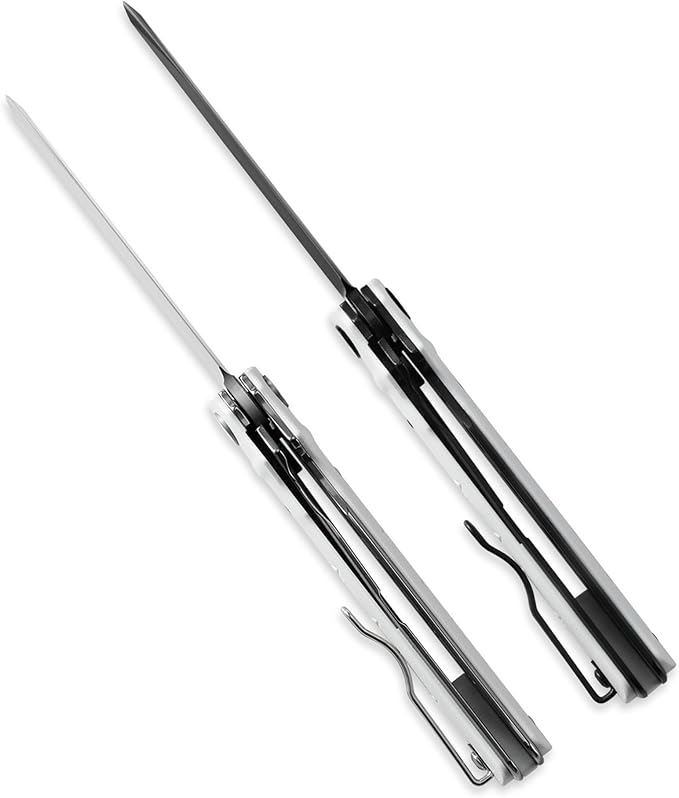 Petrified fish PFB04 Tena Folding Knife, 3.82" D2 Steel Satin Blade G10 Handle Pocket Folding knife for EDC Camping Outdoor (White Satin)