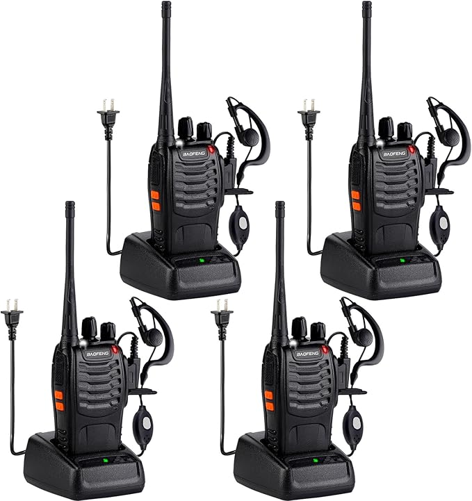 Baofeng Walkie Talkies 888S Rechargeable Long Range with Earpieces for Adults, 16 Channel Professional Radio Handheld Two Way Radios Li-ion Battery and Charger Included (4pack with 4earpiece)
