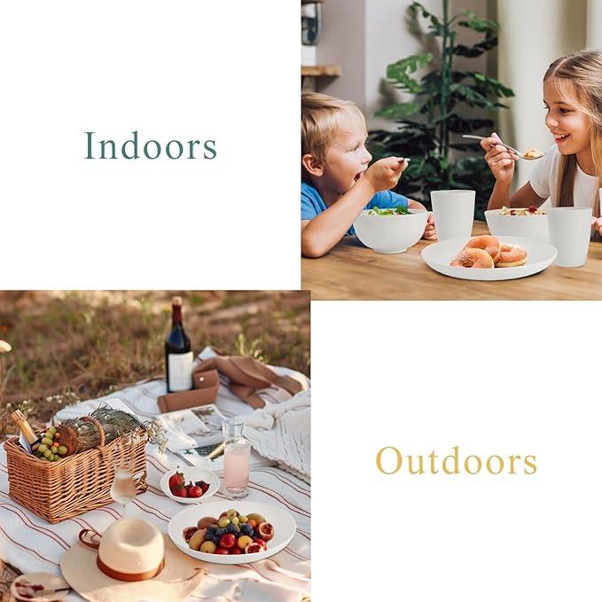 Wheat straw bowl and plate sets of 16 with cups - Unbreakable plastic dinnerware sets for kitchen - Microwave and Dishwasher safe dishes for kitchen,camping,indoors and out doors. White